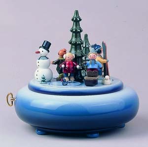 Ganz besonders kostbare Meisterwerke sind aber auch Spieldosen aus dem Erzgebirge. Diese werden in einigen Manufakturen der Region noch heute nach alter Tradition in aufwändiger Handarbeit aus Holz gefertigt, mit liebevollen, detailreichen Schnitzereien und Drechselarbeiten versehen und von Hand bemalt.